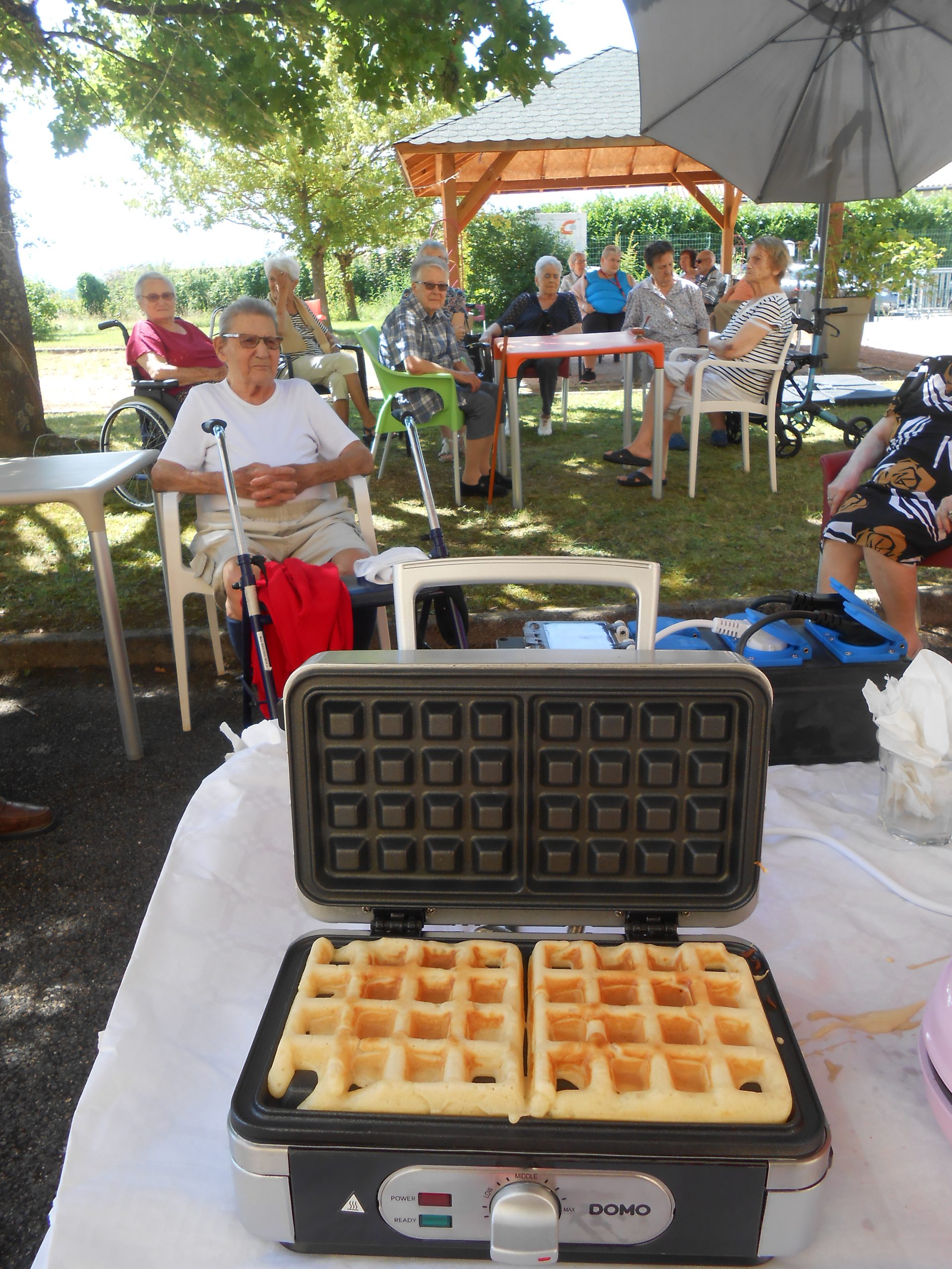 Bien installés dans le jardin, nous avons profiter d’un temps ensoleillé pour goûter aux gaufres et barbes à papa. Nous avons passé une journée bien agréable grâce à la mobilisation de tous et à une participation importante des résidents. Une expérience gourmande que nous ne tarderons pas à reproduire!