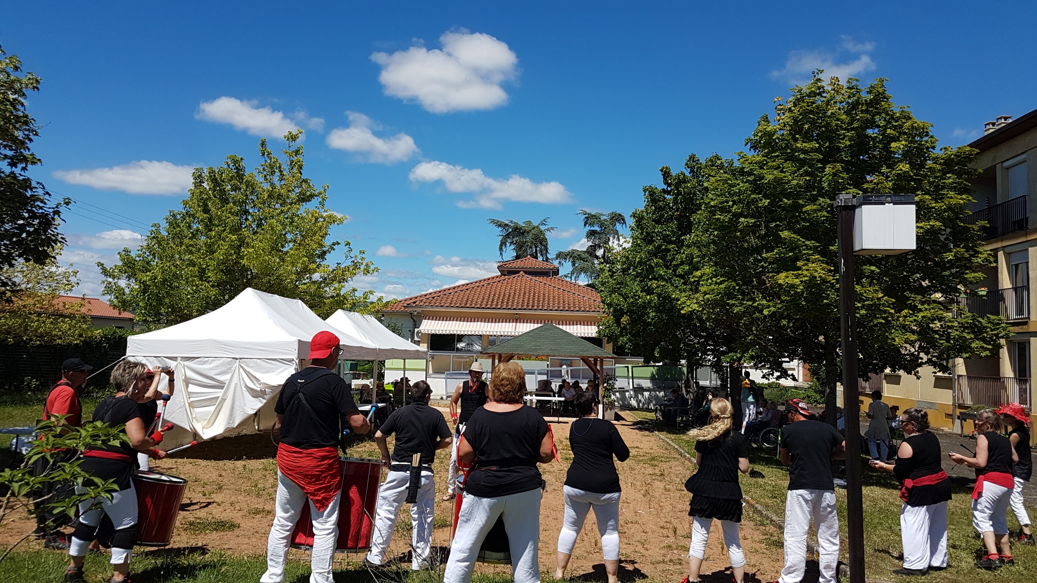 C’est donc par un bel après-midi ensoleillé que nous avons profité de rythmes endiablés produit par le groupe « BTP » ( Bouge tes pieds ).Les musiciens venus en nombre (une dizaine de percussionnistes) nous ont fait danser et bouger. Le jardin c’est formidablement bien prêté à cet évènement, nous offrant un agréable point de vue pour ce spectacle.