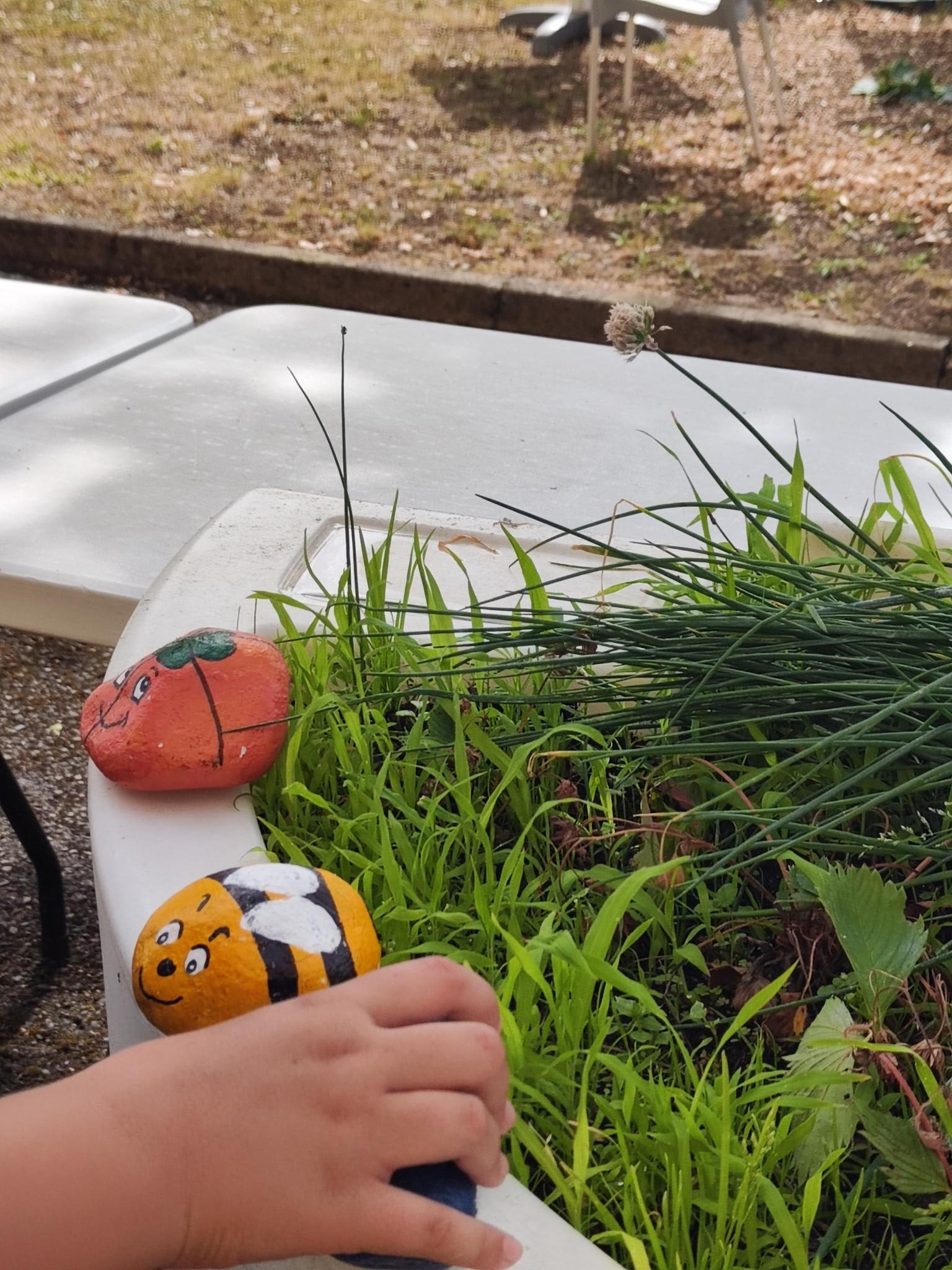 De même, les enfants de l’école ont travaillé sur des galets peints qui égayent aujourd’hui nos plantations et nos pelouses.